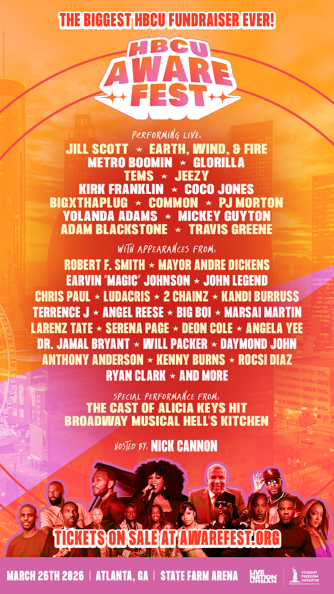 Experience HBCU Awarefest on March 26, 2026, at Atlanta’s State Farm Arena! Presented by the Student Freedom Initiative and Live Nation Urban, this incredible night features a star-studded lineup including Jill Scott, Jeezy, Travis Greene, Earth, Wind & Fire, Metro Boomin, and GloRilla, plus numerous special appearances. Whether you're an alum, a student, or a […]